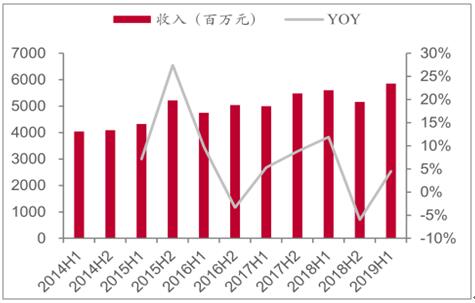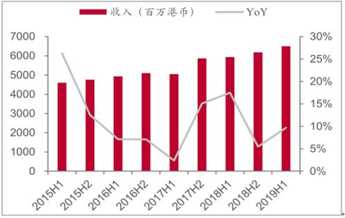 2015-2019年上半年恒安國際收入及變動趨勢