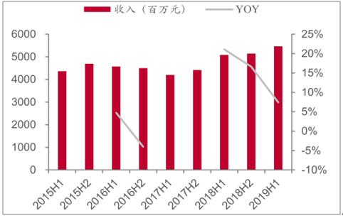 2015-2019年上半年維達國際收入及變動趨勢