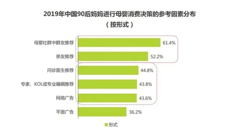 在認(rèn)知-消費(fèi)-決策的思考環(huán)節(jié)中,65.3%的90后小城新媽信賴專(zhuān)業(yè)人士背書(shū),會(huì)受到專(zhuān)家、KOL、專(zhuān)業(yè)編輯等知識(shí)型內(nèi)容推薦吸引而進(jìn)行購(gòu)買(mǎi)